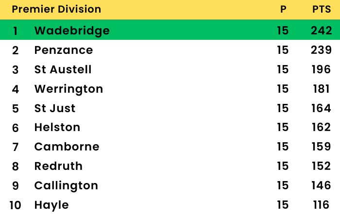 Premier: Wadebridge retain top spot while Hayle move closer to drop