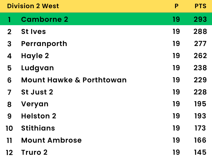 📊 Ludgvan 103 (S Stevens 22; J Harvey 8-8). Camborne 104-2 (M Hewitt 53*, L Fenton 35).